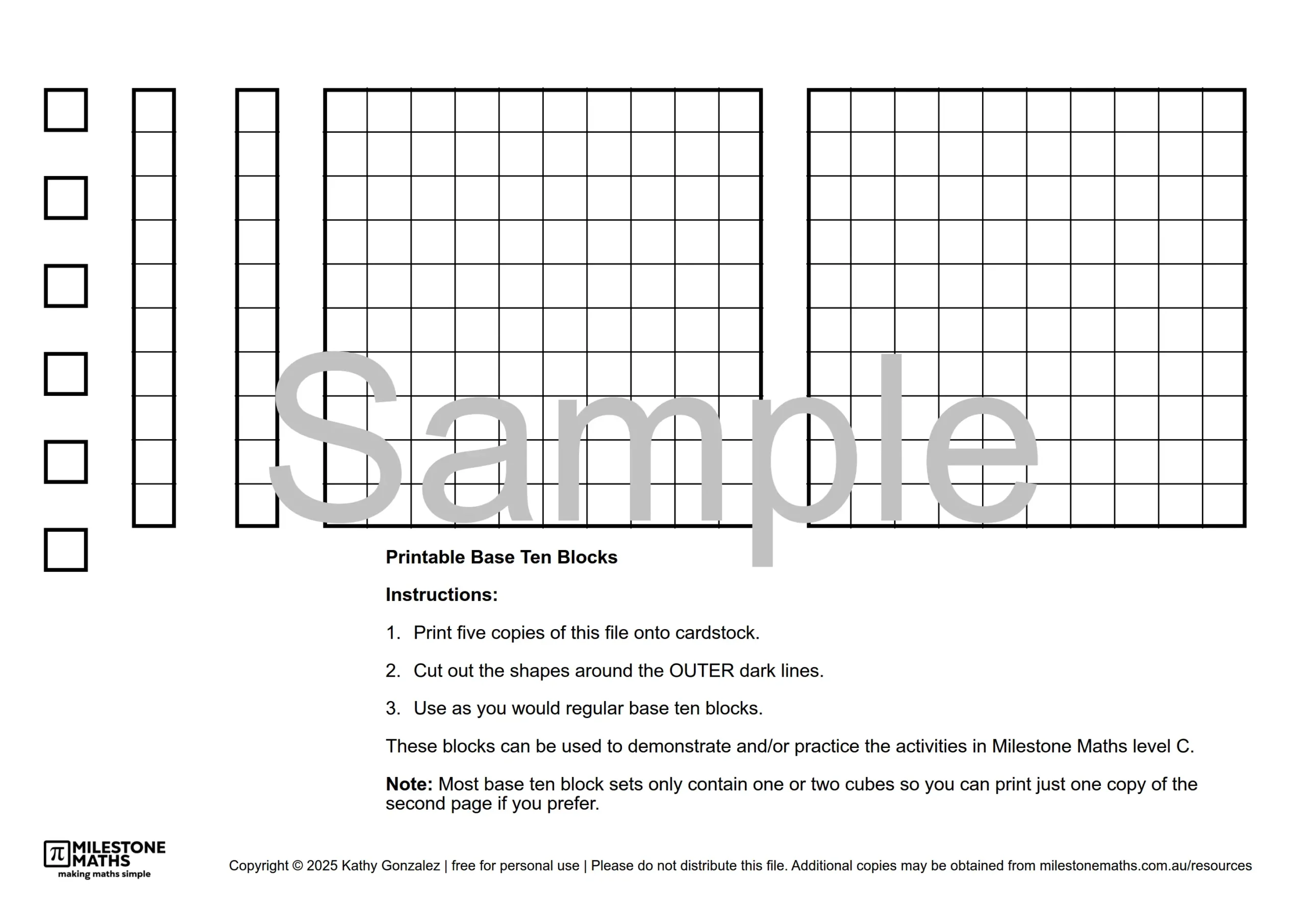 This FREE downloadable file allows you to print your own base ten block set at home for a very affordable and compact alternative to traditional wood sets.
