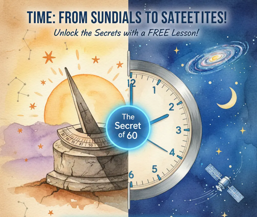 Today’s Real World Application lesson from Level D dives into the Sexagesimal System. We’re connecting the 5x table to the clock face and showing how ancient stargazers used the number 60 to map out our days.